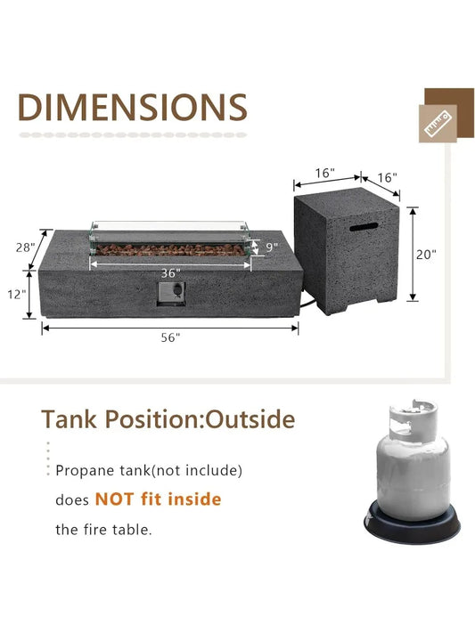 56 inch Outdoor Propane Fire Pit & Outdoor Fireplaces, Coffee Table, 50000 BTU Stainless Steel Burner, Free Lava Rocks an
